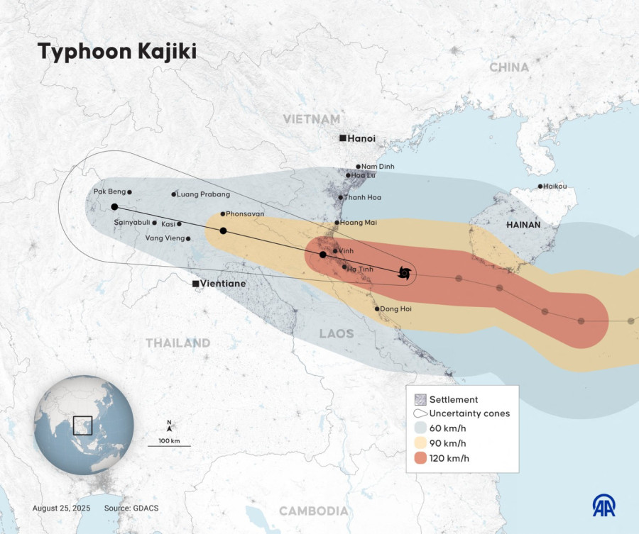 Nakon što je pogodio Vijetnam, Kadžiki je oslabio i dalje se kreće ka severu Laosa sa obilnim kišama.