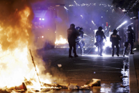 Nakon protesta i nereda u nedelju uveče, situacija je ponovo eskalirala u ponedeljak, posle 22:00 časa. Vatromet je bačen u pravcu policije, a policija je odgovorila vodenim topom i suzavcem.