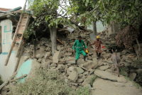 Humanitarni radnici su prijavili da satima hodaju kako bi stigli do sela odsečenih klizištima i odronima kamenja.