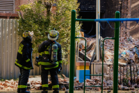 Vatrogasci kopaju po ruševinama i proveravaju da li se možda neko nalazi sipod njih.