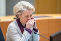 S druge strane, njih kroz "špijunku" na vratima prati predsednica Evropske komisije Ursula fon der Lajen, koja na fotografiji ima vidno zabrinuto lice.