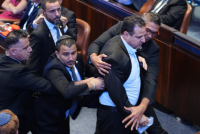 U prvom momentu nije bilo jasno šta se dogodilo, ali se ispostavilo se da je poslanik levice krenuo da ometa govor i navodno ka govornici. Odmah je reagovalo obezbeđenje.