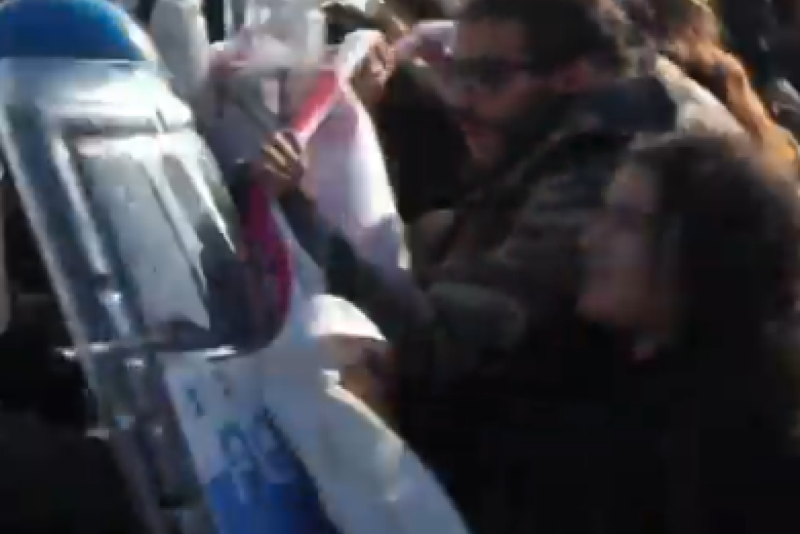 Tokom upada u zgradu došlo je do žestokog okršaja demonstranata i policije, što se jasno vidi na snimcima i fotografijama sa lica mesta. Deo okupljenih nasrtao je na policijske kordone gađajući ih predmetima i pokušavajući da probije obezbeđenje.