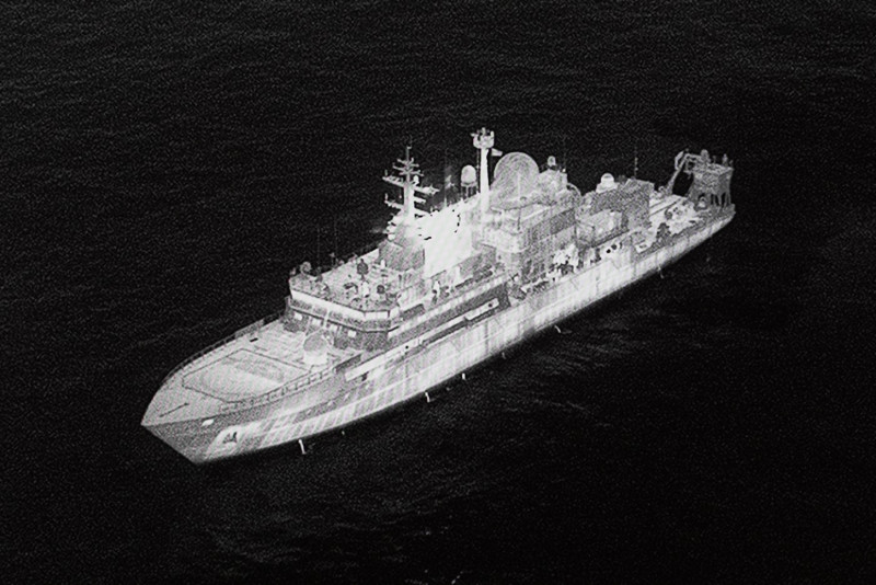 Nakon što su fregata Kraljevske mornarice i avioni RAF-a P8 poslati da prate brod, ruski članovi posade preduzeli su "veoma opasan" potez usmeravanja lasera na pilote, rekao je on.