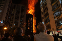 Međutim, vatrena stihija se proširila zbog bambusovih skela postavljenih oko spoljne fasade zgrade, a vatrogasci su pokušavali da obuzdaju plamen koristeći merdevine i vodu sa visine, preneo je AP.
