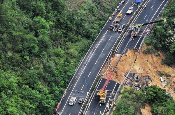 "Osamnaest automobila palo je niz padinu nakon što se oko dva sata posle ponoći urušio deo autoputa dug 17,9 metara", navodi se u saopštenju vlasti u gradu Meidžou u provinciji Guangdong, prenosi AP.