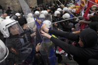 Kako prenosi TV kanal TRT Haber, 28 policajaca je povređeno kada su ih učesnici mitinga napali kamenicama i palicama sa zastavama.