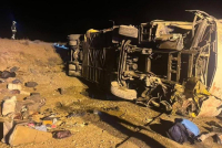 Nesreća se dogodila kasno sinoć kada je autobus udario u centralnu zaštitnu ogradu auto-puta, prešao u suprotnu traku i sudario se sa taksijem pre nego što se prevrnuo, saopštila je policija.
