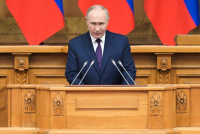 "Kada smo se uverili da posle osam godina torture nad ljudima koji su živeli i žive u Donbasu nismo uspeli da rešimo probleme u tom regionu, 2022. godine počeli su drugi problemi za te ljude, koje smo uvek smatrali našim, a oni su Rusiju smatrali svojom istorijskom domovinom. Nešto kasnije postalo je jasno da nas (neprijatelji) jednostavno vuku za nos i da moramo preduzeti vanredne mere i vojnom silom zaštititi ljude u Donbasu", rekao je Putin.