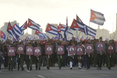 Desetine hiljada Kubanaca okupile su se juče u sedištu Ministarstva oružanih snaga kako bi odale počast grupi od 32 poginula oficira.