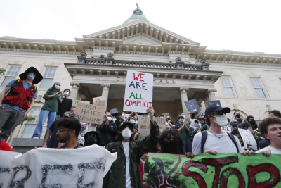 Nekoliko minuta ranije, suzavac je bio korišćen kada su demonstranti pokušali da se približe Grobu Neznanog junaka, ispod zgrade parlamenta.