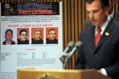 San Diego je prvi put optužen u Kaliforniji 2004. za dva krivična dela izazivanja štete eksplozivom i posedovanje eksploziva. Kasnije su dodate nove optužbe, uključujući korišćenje ili nošenje eksplozivnog uređaja za izvršenje krivičnog dela. Bombaški napadi su se dogodili u Kaliforniji 28. avgusta i 26. septembra 2003, na kompanije Chiron Biotechnology Corporation i Shaklee Nutritional Products Corporation, pri čemu nije bilo povređenih.