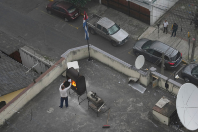 Pre nego što je diplomatsko osoblje otišlo, kubanska zastava uklonjena je sa ambasade koja se nalazi na severu Kuita.