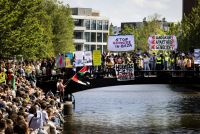 Tehnološki univerzitet u Ajndhovenu je rekao da su desetine studenata mirno protestovale ispred te ustanove i da je postavljeno 10 do 15 šatora".