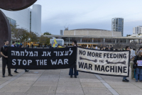 Na protestu u Haifi, koji je okupio oko 100 ljudi, demonstranti su mahali izraelskim zastavama dok su skandirali protiv tekućih borbi.