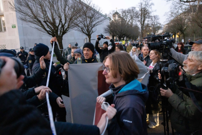 Na snimku koji se deli na društvenim mrežama vidi se brutalno postupanje policajca prema mladoj ženi na Prešernovom trgu u Ljubljani, prenose mediji.
