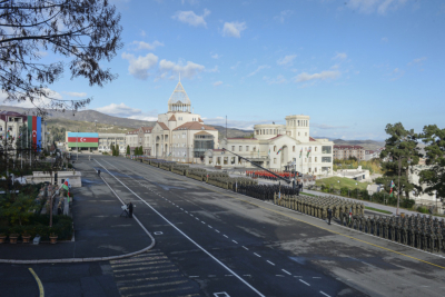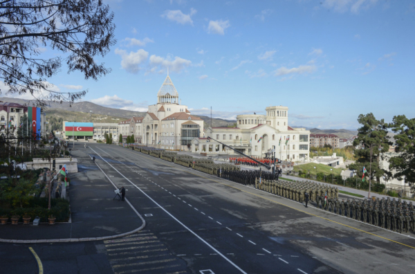 Predsednik Azerbejdžana Ilham Alijev održao je vojnu paradu u novembru na centralnom trgu prestonice u blizini zgrade parlamenta, a snimljen je kako gazi separatističku zastavu jermenskog Karabaha.
