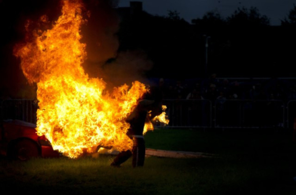 Na snimku koji kruži internetom se može videti kako policajac drži uperen pištolj dok vojnik Gori, a drugi službenik gasi vatru aparatom za gašenje požara.