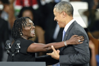 "Ovde sam jer pogledajte šta se dešava. Mladi Kenijci demonstriraju za svoja prava. Demonstriraju sa zastavama i transparentima", rekla je Obama.