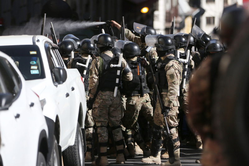 Pod komandom generala Huana Hosea Zunige, teško naoružani vojnici i oklopna vozila okupili su se u sredu u La Pazu na gradskom trgu Plaza Muriljo i ušli u teritoriju predsedničke palate.