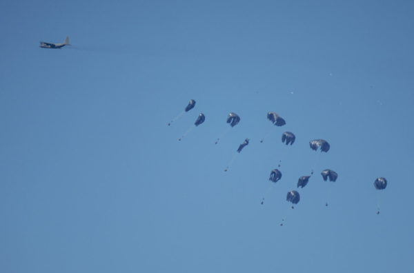 Američka Centralna komanda (CENTCOM) navela je u saopštenju da je najnovija pomoć isporučena padobranima iznad severnog Pojasa Gaze i da je uključivala pirinač, brašno, testenine i konzervisanu hranu.