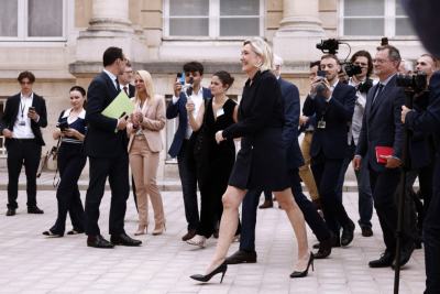 Poslanici u novom sazivu Narodne skupštine Francuske počeli su da pristižu u palatu Burbon, a pažnju medija je privukla Marin Le Pen, koja je napravila zajedničku fotografiju sa 125 predstavnika svoje stranke.