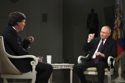 Karlson je 9. februara objavio intervju s predsednikom Rusije Vladimirom Putinom na svom sajtu, a zatim ga je objavio i na društvenoj mreži "Iks" i na Jutjub kanalu.