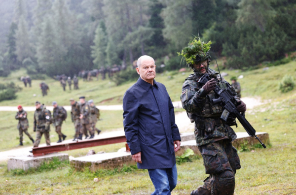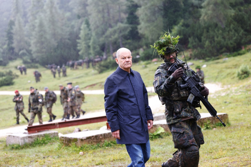 Nemački kancelar Olaf Šolc objavio je na svom Instagram nalogu fotografije sa vojnicima koji vežbaju na terenu.
