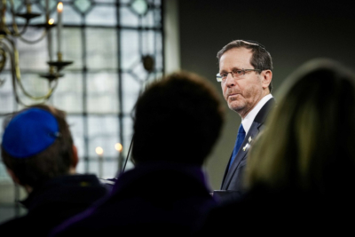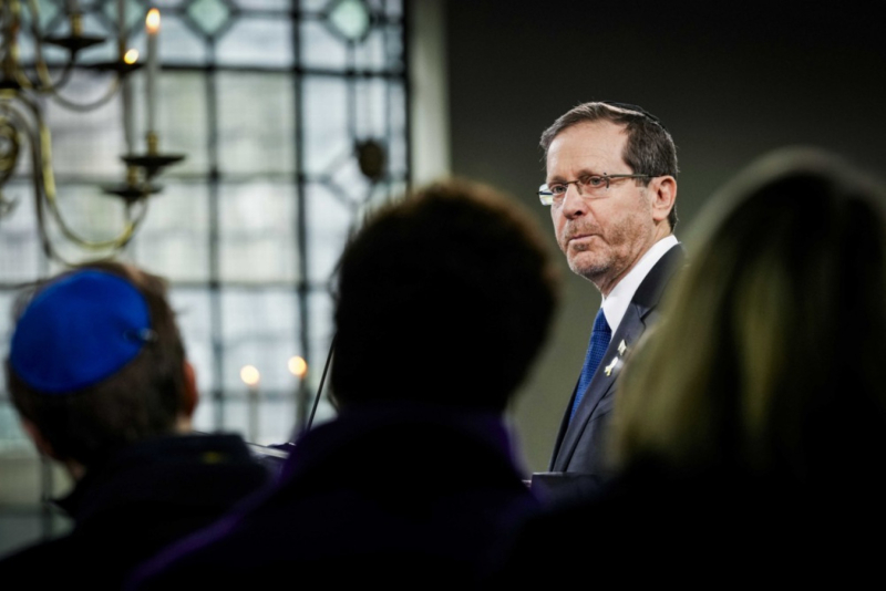 Predsedniku Izraela Isaku Hercogu i njegovoj delegaciji dopušteno je da izađu iz aviona na aerodromu u Parizu tek pošto su posle sletanja proveli u njemu još 40 minuta "zbog brige za bezbednost", rekao je predsednički portparol.