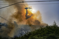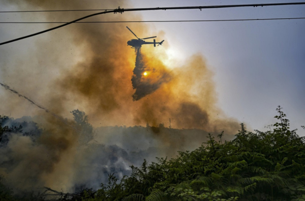 Ljudi su prebačeni na sigurno iz kompleksa Baia San Felice u blizini grada Vieste na obali Jadranskog mora jer se požar opasno približio.