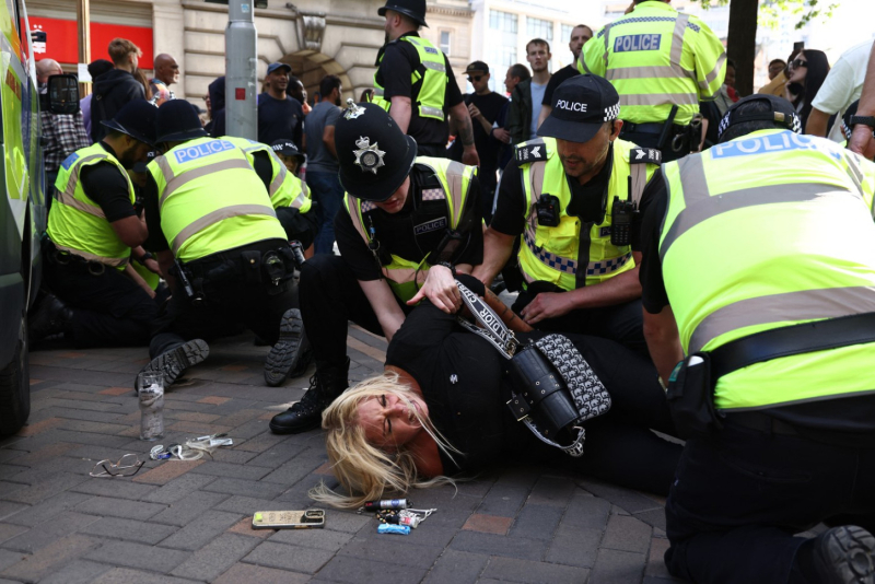 U Mančesteru su danas izbili sukobi pristalica krajnje desnice koji su održavali protest i aktivista protiv rasizma koji su napali desničare, a policija je izdala naređenje za rasturanju tih protesta.