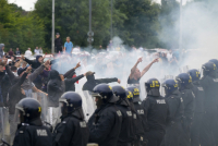 U Roterhamu na severu Engleske se policija borila da obuzda gomilu izgrednika koji su pokušali da provale u hotel "Holidej In Ekspres" koji se koristi kao smeštaj za tražioce azila.