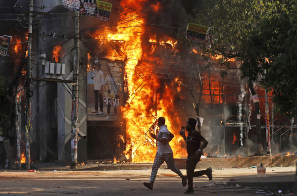 Cela Daka se pretvorila u bojno polje i grupa od više hiljada demonstranata zapalila je vozila i motocikle blizu jedne bolnice, prema drugom policijskom izvoru.