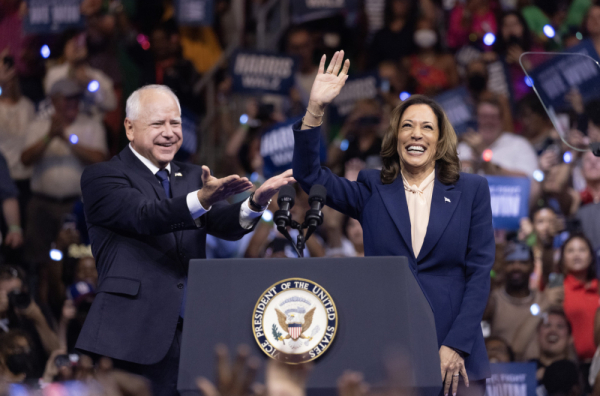 Najverovatniji kandidat demokrata na predsedničkim izborima Kamala Haris i njen potpredsednik Tim Volc održali su sinoć prvi zajednički predizborni skup, na Univerzitetu Templ u Filadelfiji.
