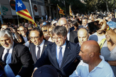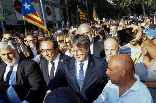 Pudžemon se u četvrak pojavio pred svojim pristalicama u Barseloni, uprkos nalogu za hapšenje posle napuštanja Španije pre sedam godina. On je pred oko 3.500 pristalica održao kratak govor, a njegovo pojavljivanje bilo je propraćeno jakim policijskim snagama, a nakon kratkog pojavljivanja nestao je u nepoznatom pravcu.