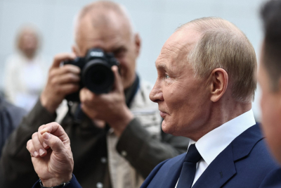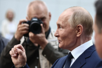 Putin je, iz nepoznatog razloga, svoje slušalice spustio i nosio ih preko brade sve vreme.