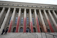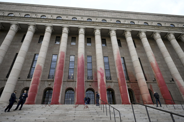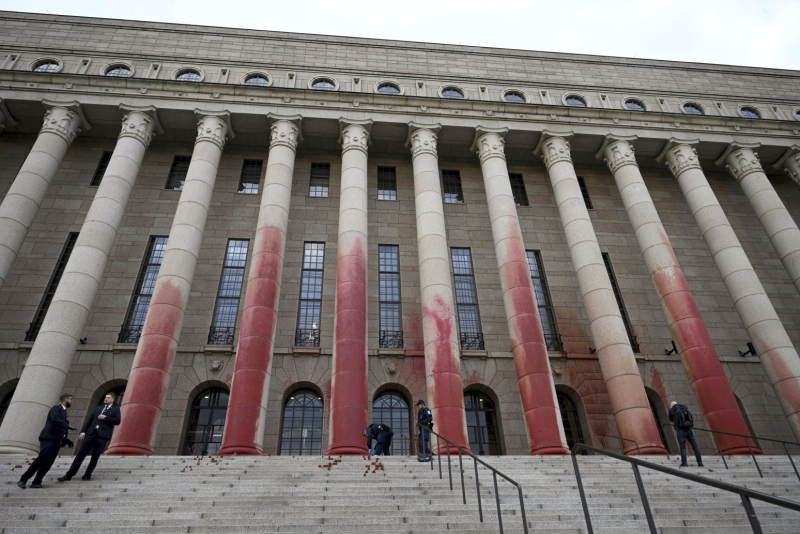 Grupa ekoloških aktivista polila je zgradu Parlamenta Finske crvenom farbom u znak protesta zbog vađenja treseta, prenosi finski radio Ile.