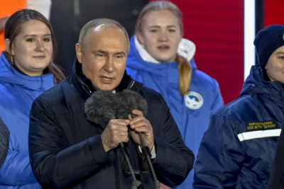 Uz Putina, na proslavi su bila i trojica njegovih izbornih protivnika, koji su zajedno sa okupljenim pevali rusku himnu. Putin je rekao da "Rusija ide napred, ruku pod ruku sa teritorijama koje je okupirala u Ukrajini“.