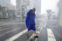 Tajfunu je prethodio jak vetar od 126 km/h sa udarima do 162 km/h i obilna kiša.