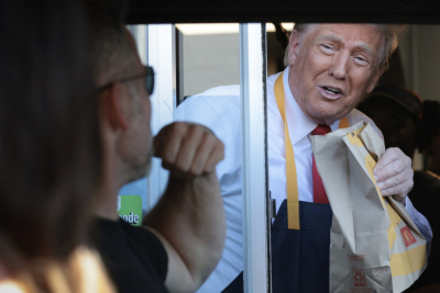Haris je tokom kampanje pričala o svojim iskustvima u Mekdonaldsu, odnosno da je tamo radila i pržila pomfrit, pa je Tramp odlučio da se okuša u tom poslu.