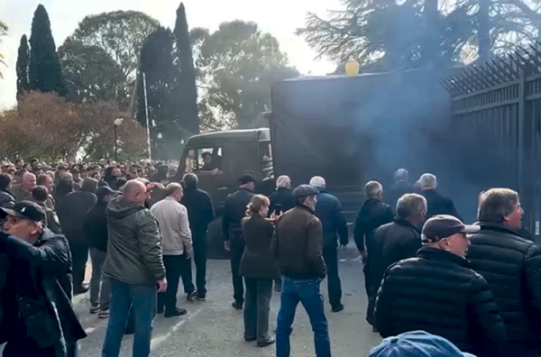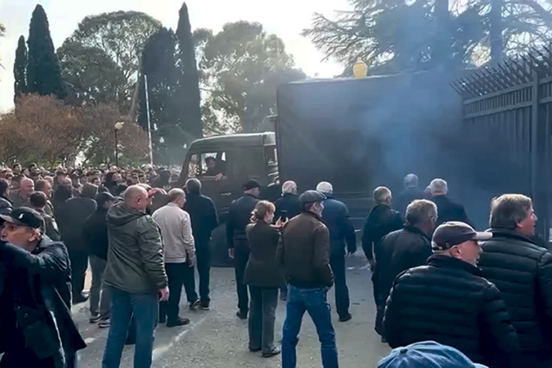 Sukobi snaga bezbednosti i pristalica opozicije počeli su jutros kod zgrade parlamenta, a demonstranti su tražili ostavku predsednika Aslana Bžanije.