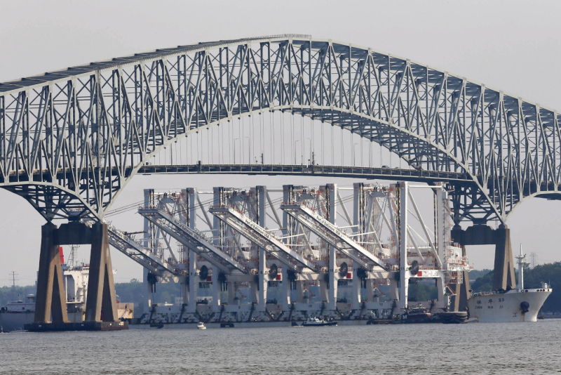 Na snimcima se jasno vidi trenutak kada je brod udario, nakon čega se ceo most urušio.