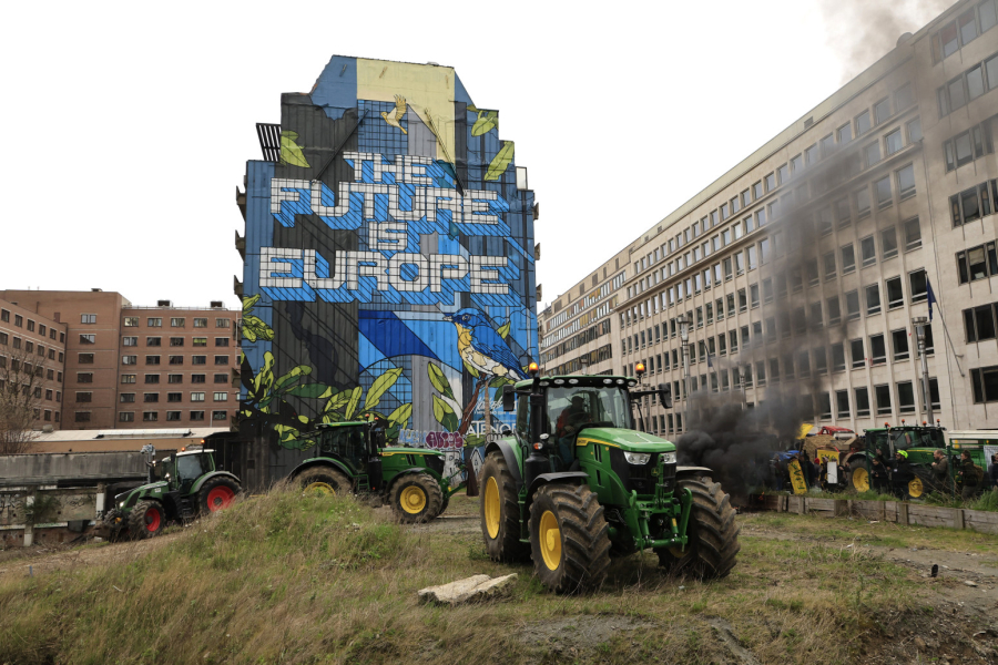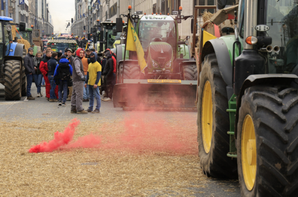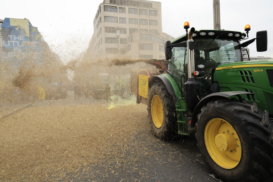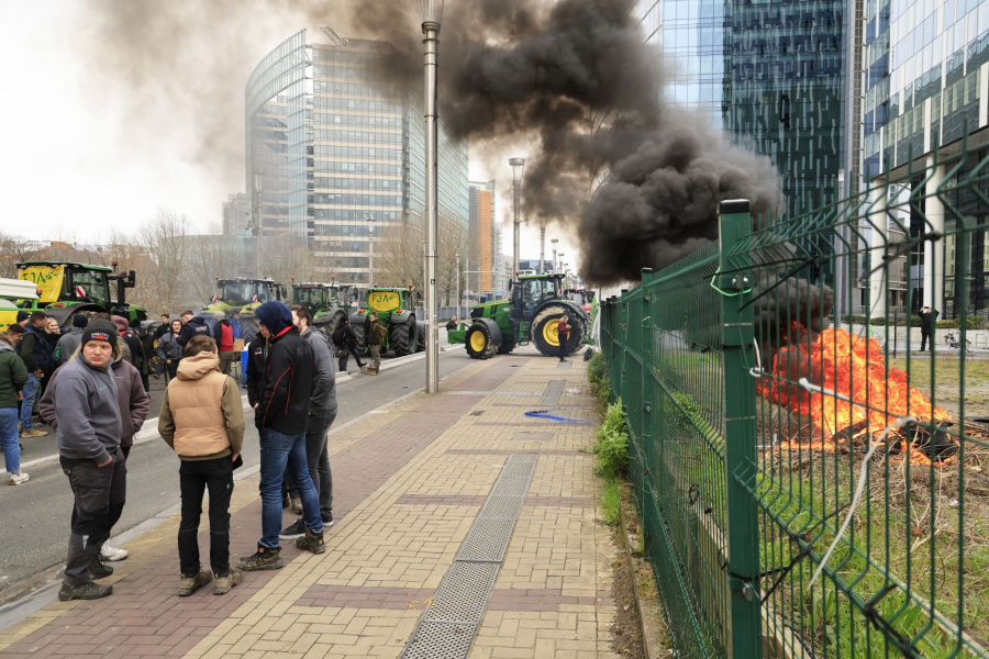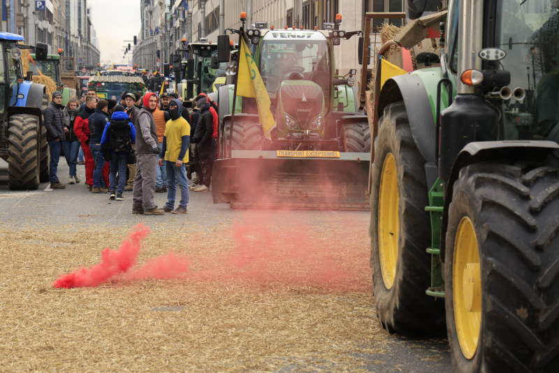 Na desetine traktora parkirano je u bulevaru koji vodi do zgrade Evropskog saveta u Briselu, a farmeri su izašli na ulice kako bi pokazali nezadovoljstvo uslovima za poljoprivrednike.
