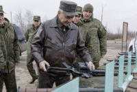 Na snimku, čija autentičnost nije potvrđena, Šojgu dolazi do bacača granata RBG-6 i zainteresovano ga gleda.