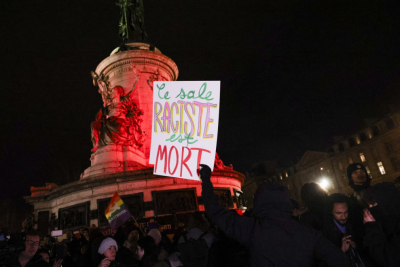 U Parizu se nekoliko stotina demonstranata okupilo na trgu Republike, gde su se penjali na centralni spomenik i skandirali antifašističke slogane, uz paljenje petardi. Na jednom od transparenata pisalo je: "Ovaj odvratni rasista je mrtav". U Lionu se okupilo oko 200 do 300 osoba, a tokom skupa paljen je vatromet, dok su u Marseju demonstranti otvorili boce šampanjca i nosili transparente "Napokon".