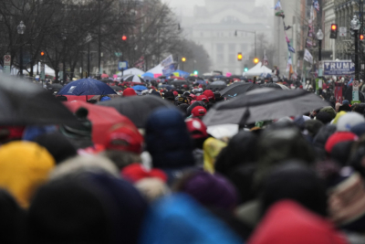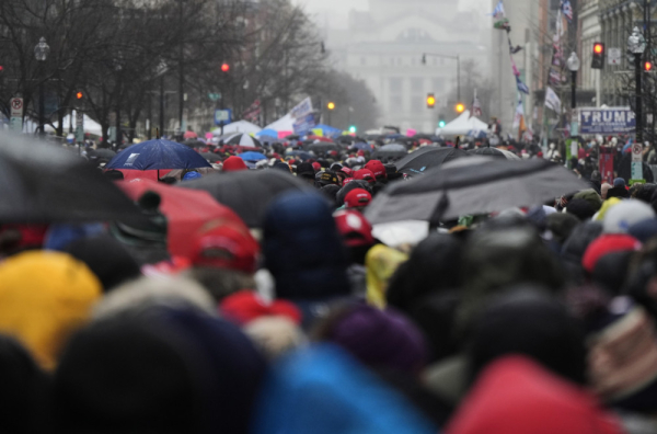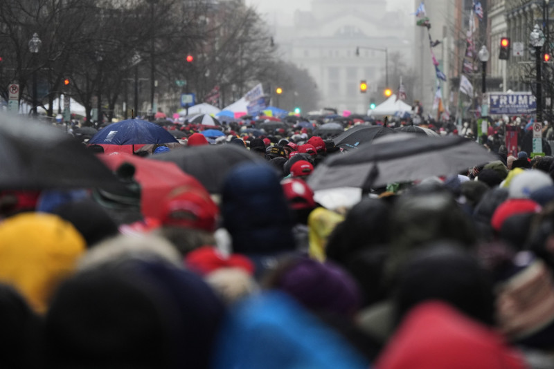 Taj deo Vašingtona je trenutno blokiran zbog velikog broja Trampovih pristalica, od kojih su mnogi obučeni u njegov zaštitni znak - MAGA (Make America Great Again) kačkete i crvene jakne.