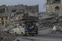 Gradonačelnik Rafe Ahmed el Soufi apelovao je na palestinske civile koji su raseljeni zbog sukoba da ne pokušavaju da se vrate u grad, uprkos povlačenju izraelskih snaga iz centra grada.