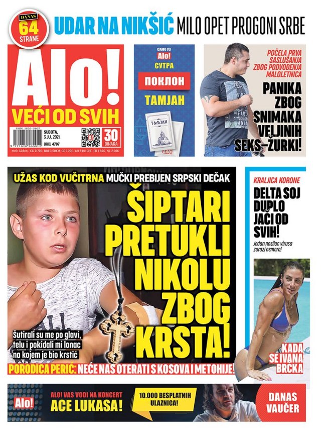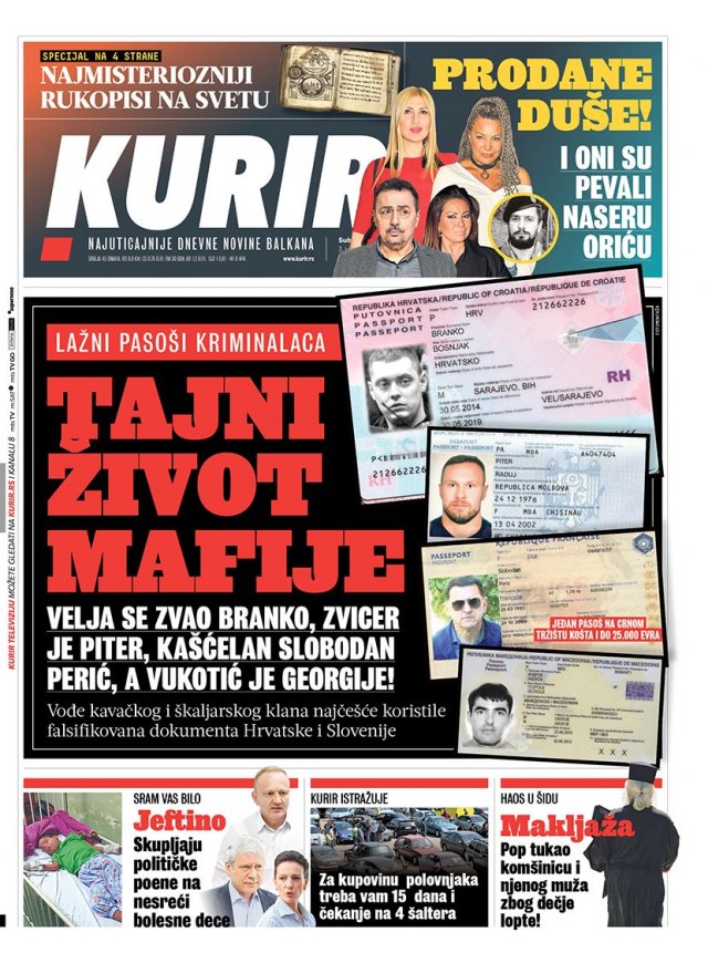 "Kurir" piše: "Tajni život mafije", a "Alo" da su "Šoptari pretukli Nikolu zbog krsta".