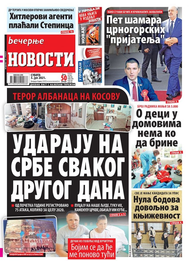 Novine: "Udaraju na Srbe svakog drugog dana"; "Tajni život mafije"