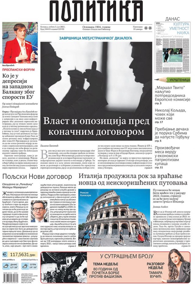 Dnevna štampa se bavi koronavirusom i piše da je delta soj stigao. Pored toga, novine se bave i situacijom na Kosovu i Metohiji.